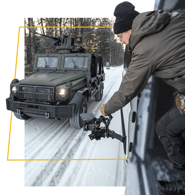 Dank kompakter Setups entstehen hochwertige Inhalte auch dort, wo große Produktionen an Grenzen stoßen – effizient, mobil und ohne komplizierte Abläufe. Ideal für taktische Szenarien, Outdoor-Produktionen und alle, die visuelle Präzision erwarten – ohne Produktionsballast.